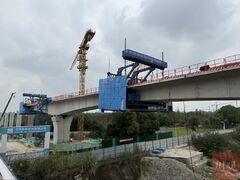 四川觀察成德S11線鴨子河大橋雛形已現(xiàn),三星堆站即將動工!成德“雙城生活”再近一步。10月16日,“萬千氣象看四川”四季度集中采訪團來到市域鐵路成德S11線建設(shè)現(xiàn)場,在鴨子河北岸,工人操作器械正在緊張施工。 “看,這就是控制性工程鴨子河大橋!”順著四川成德軌道交通有限公司土建四工區(qū)業(yè)主代表張智勇手指的方向,記者看到,全長496米的大橋,樁基、承臺、橋墩已全部完成,4座橋墩穩(wěn)穩(wěn)矗立河中,河面上橋梁段也已架設(shè)