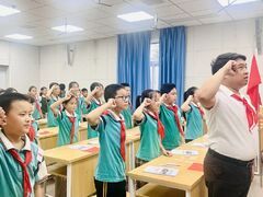 自貢網(wǎng)自貢融媒記者 蘭艷 文/圖 國(guó)慶將至,各大校園洋溢著濃厚的愛(ài)國(guó)氛圍。9月28日,一場(chǎng)以“致敬五星紅旗,爭(zhēng)做時(shí)代先鋒”為主題的少先隊(duì)隊(duì)課在大安區(qū)牛佛鎮(zhèn)中心校舉行。? “報(bào)告輔導(dǎo)員,本中隊(duì)?wèi)?yīng)到10人,實(shí)到10人,請(qǐng)指示!”清晨,伴隨著五年級(jí)(二)班各中隊(duì)長(zhǎng)清脆有力的報(bào)告聲,一場(chǎng)莊重而富有感染力的隊(duì)拉開(kāi)帷幕。 隊(duì)課開(kāi)始,全體起立,出隊(duì)旗,少先隊(duì)員行隊(duì)禮,奏唱《中國(guó)少年先鋒隊(duì)隊(duì)歌》。大隊(duì)輔導(dǎo)員播放天安門廣