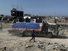 央視網(wǎng)總臺記者當(dāng)?shù)貢r間16日獲悉,當(dāng)天共計有14輛滿載燃料和天然氣的卡車經(jīng)位于埃及拉法市南部的凱雷姆沙洛姆口岸進(jìn)入加沙地帶。 埃及北西奈省的消息人士稱,作為埃及第51批援助物資的一部分,當(dāng)天有10輛卡車裝載550噸柴油,2輛卡車裝載120噸汽油,2輛卡車裝載50噸家用天然氣,經(jīng)陸路拉法口岸側(cè)門進(jìn)入凱雷姆沙洛姆口岸后抵達(dá)加沙地帶。(總臺記者 吳愛民)