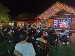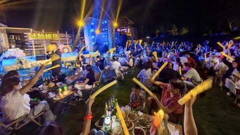 自貢網(wǎng)10月8日晚,大安區(qū)青龍湖房車(chē)營(yíng)地?zé)艋痂?、人聲鼎沸?025/2026四川省城市足球聯(lián)賽自貢隊(duì)對(duì)陣瀘州隊(duì)的“第二現(xiàn)場(chǎng)”觀賽活動(dòng)在此熱烈舉行。球迷們齊聚于此,一邊看著大屏賽事直播為自貢燈城燊龍隊(duì)吶喊助威,一邊圍著自助烤肉區(qū)大快朵頤,滋滋作響的肉香與熱血的加油聲交織,勾勒出秋夜最鮮活的煙火氣。 夜幕下的青龍湖房車(chē)營(yíng)地,巨型屏幕前人頭攢動(dòng)。隨著川超自貢隊(duì)賽事的直播開(kāi)啟,現(xiàn)場(chǎng)瞬間化為一片紅色海洋——市民