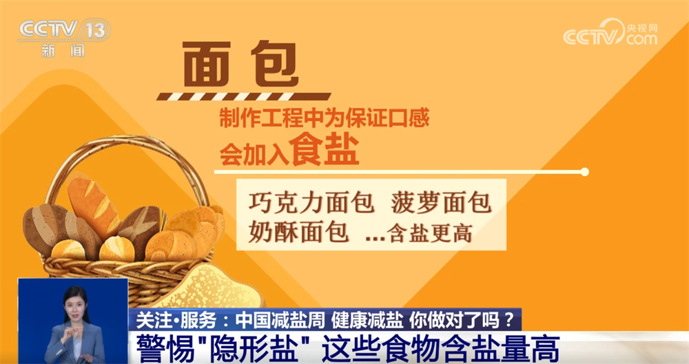 面包在制作工程中為了保證口感會加入食鹽,巧克力面包、菠蘿面包、奶酥面包等含鹽更高。