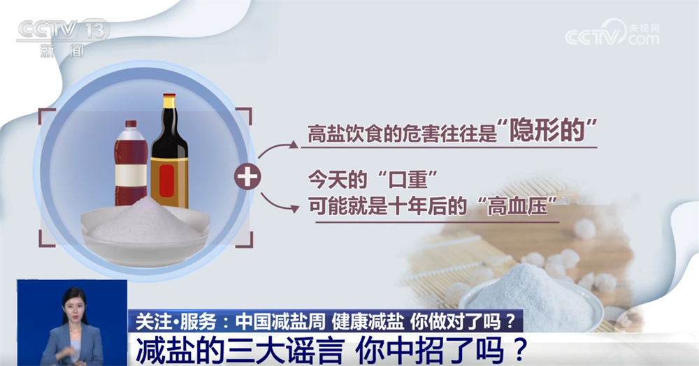央視網(wǎng)消息:俗話說“開門七件事,柴、米、油、鹽、醬、醋、茶”。鹽是維持人體正常生命活動的重要物質(zhì)。但是,長期高鹽飲食危害大,很多疾病都跟食鹽攝入量過多有關(guān)。本周,也就是9月15日所在的這一周是“中國減鹽周”。“中國減鹽周”的設(shè)立是為了向公眾宣傳減鹽知識,爭取做到家庭合理用鹽、科學(xué)控鹽、正確減鹽。