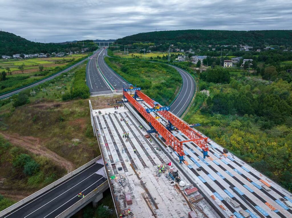 廣綿擴容工程綿陽段架梁貫通。 中鐵五局供圖