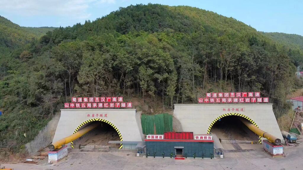 漢廣擴容項目紅巖子隧道位于四川省廣元市利州區(qū)龍?zhí)多l(xiāng)紅巖村,采用雙向六車道標準建設,設計時速100公里。施工期面臨拱頂?shù)魤K、軟硬巖交替堆疊易變形失穩(wěn)、隧道洞身下穿民房及池塘密集區(qū)等難點,施工團隊積極推行集團自主研發(fā)的“隧道動態(tài)設計系統(tǒng)”,有力保障了隧道安全、高效施工。漢廣擴容項目全長71.298公里,起自廣元市旺蒼縣自生村(川陜交界處),對接在建的京昆高速公路廣元至綿陽擴容項目,于2024年全面開工建設,預計2028年建成通車。