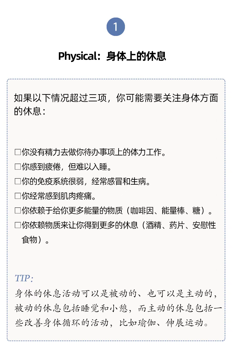 那么,到底什么樣的休息才是高質(zhì)量的休息,以及你現(xiàn)在最需要的是哪種休息?