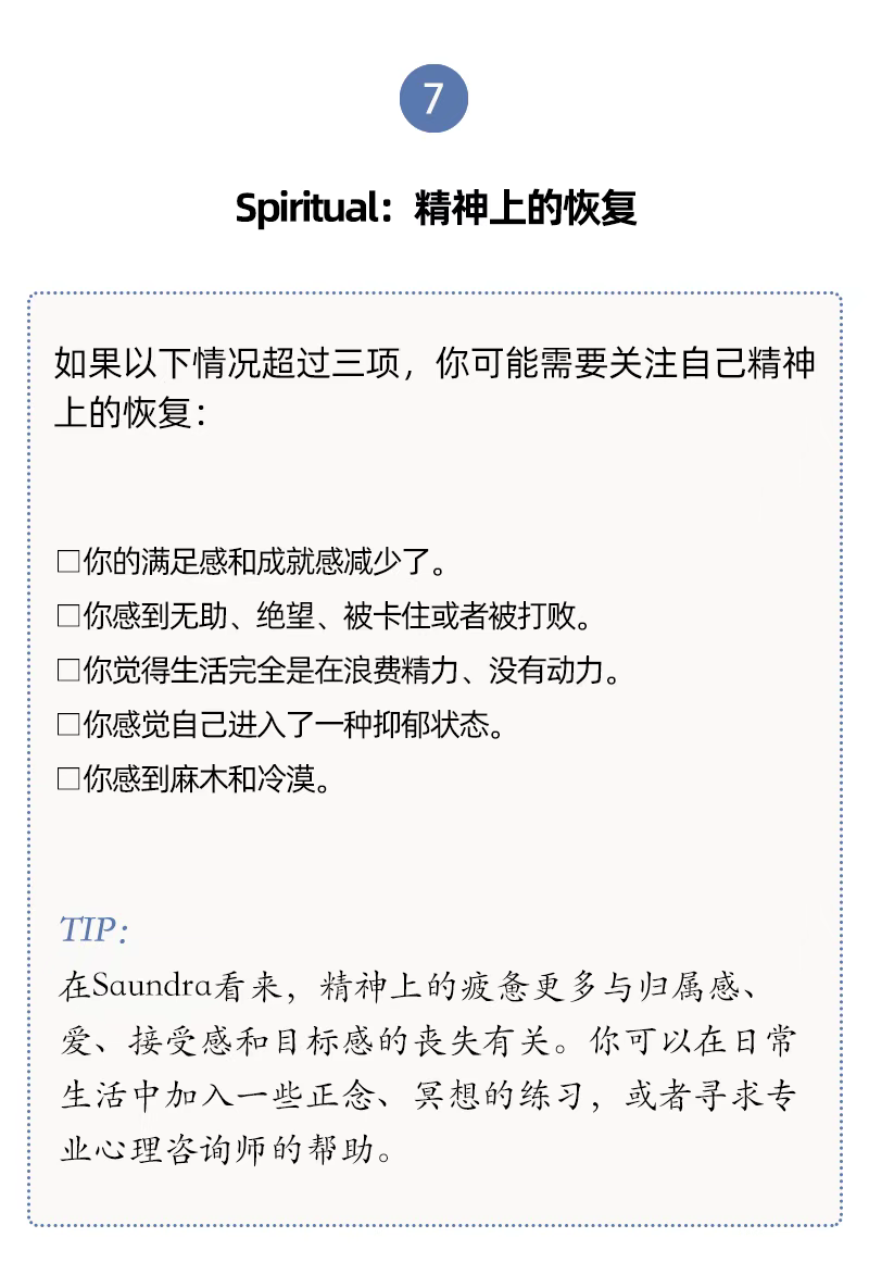 有內(nèi)科醫(yī)生根據(jù)研究和臨床經(jīng)驗(yàn),提出了7種類型的休息方式,幫助人們確定,你現(xiàn)在最需要的是哪一種。
