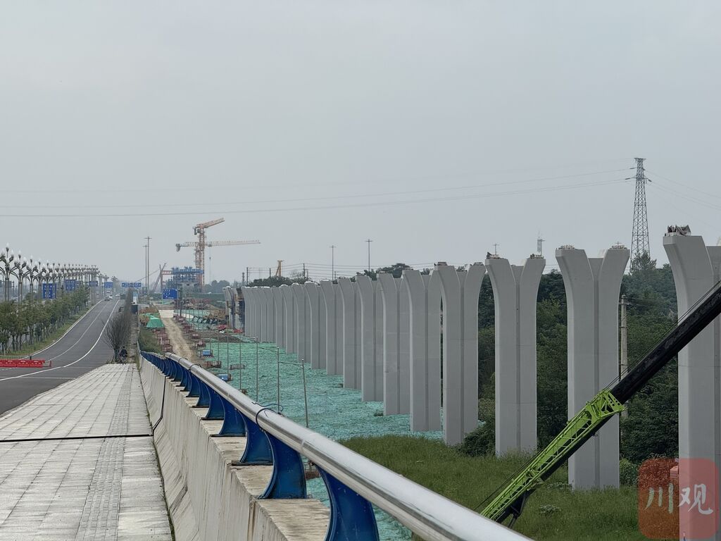 “中跨和次中跨已經(jīng)合龍,全橋預(yù)計(jì)12月底實(shí)現(xiàn)整體合龍?!睆堉怯陆榻B。沿天府大道望去,一個(gè)個(gè)澆筑完成的橋墩整齊排列,靜待橋梁上架。