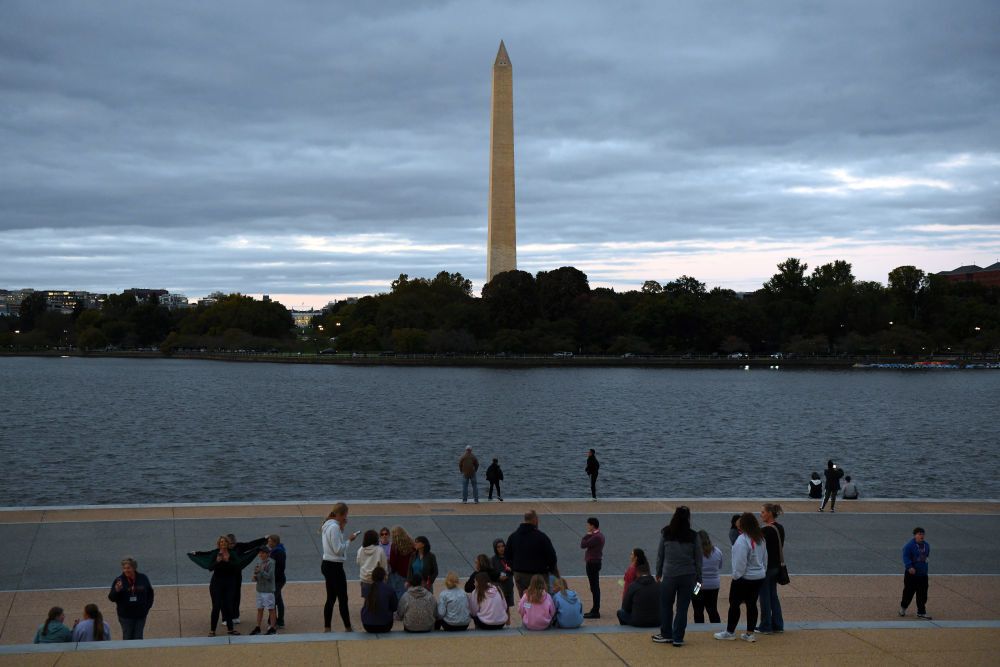 這是10月14日在美國華盛頓杰斐遜紀(jì)念堂前拍攝的華盛頓紀(jì)念碑。新華社記者李睿攝